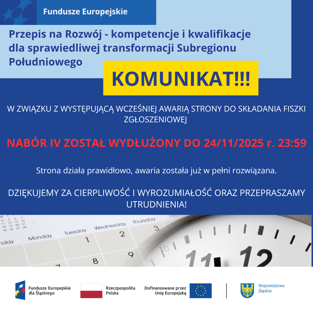 Aby każdy miał zapewnioną możliwość udziału, przypominamy, że nabór został wydłużony do 24.11.2025 r. do godziny 23:59. ⏳