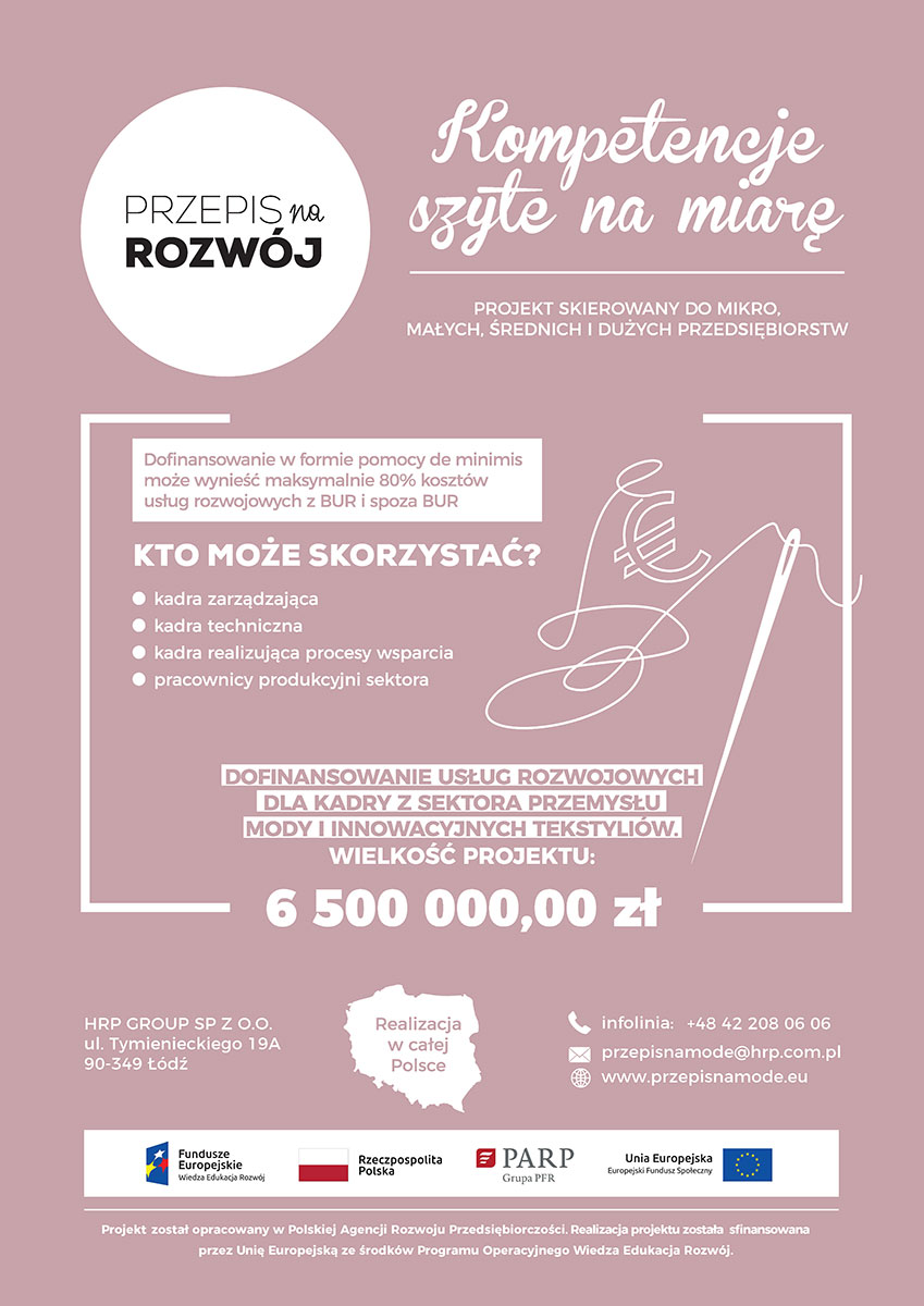 Wszystkie powyższe dokumenty oraz wytyczne są do pobrania na stronie https://hrpgrants.com.pl/projekty/przepis-na-rozwoj-moda/#do-pobrania